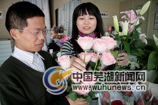 除了做营销策划、网站设计外,王庆润的团队还利用工作室的门面开了一家鲜花店,面向大学生销售鲜花(如上图)。更妙的是,王庆润在给一家餐馆做营销策划时,还加入了“前来就餐的每对情侣可以免费获赠玫瑰花”这一条,这样一来既提高了鲜花店里玫瑰花的销量,又增加了餐馆的吸引力和独特性。