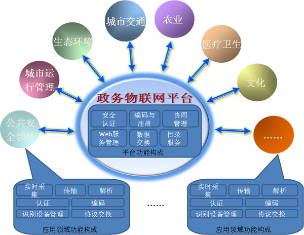 政务物联网在公共安全、城市运行管理、生态环境、城市交通、农业、医疗卫生、文化等领域实现相应功能。