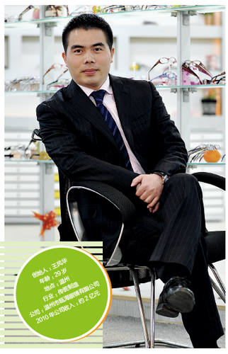 有人称他是“鲤鱼跳龙门”,年少时抱着做公务员的想法,没想到“状元”做不成,反倒成了“员外”。不过这个很早就看清行业局势,提出公司改变战略的年轻人,用了9年时间,一手做起外贸,一手严控质量,将这家曾经只懂生产的企业顺利完成转型,打造为年销售额2亿余元的眼镜大亨。也许对于人生或是生意,转型都要趁早。
