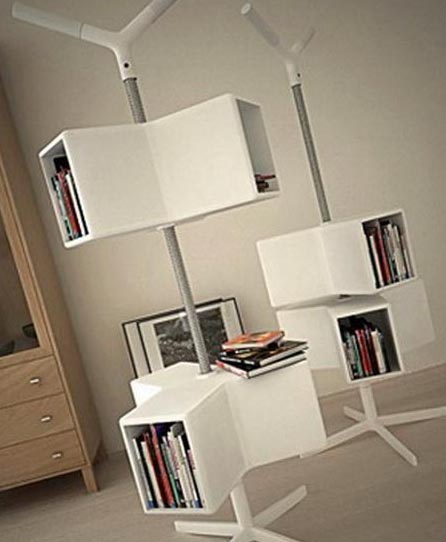 一般情况下我们去图书馆看书的时候,会先去书架上挑书,然后拿到桌子上,再泡上一杯咖啡才开始慢慢进行阅读。设计师Juil Kim的聪明之处就在于把书架、桌子和书本结合在一起,于是设计出了这个螺旋式图书架。你可以按照自己的喜好来安装书架的数量,然后摆些书进去,向上或向下调节你需要的高度。值得称赞的是它的顶部还安装了LED灯,这样夜晚的时候也能够“挑灯夜读”了!