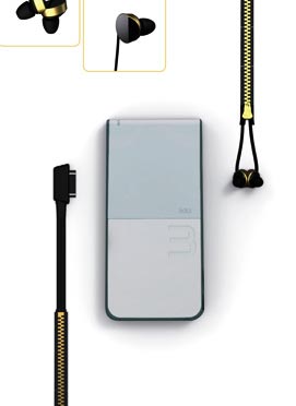 这款来自设计师Hirotaka Matsui的设计,是把耳机线做成拉链的形态,不仅可以让耳机线不再缠绕,轻松地使用和存放,而且造型也时尚动感。拉链耳机连接的两个耳塞,左右两边分别安有微型磁铁,不使用的时候可以让耳机的两头牢牢地粘在一起,不再杂乱。总之,只要别让你的头发和皮肤卡在里面,使用这款耳机绝对是明智之举。
