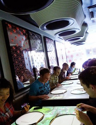 在伦敦最时尚的Soho区,你可以在沃德街找到一家带有浓厚亚洲气息的餐厅,你在这里不会因为等餐而无聊,还可以与朋友一起玩最先进的桌面互动游戏,甚至你还可以选择田园式的乡村景象来安抚情绪。所有的这一切,让这家名叫Inamo的餐厅座无虚席,因为这里采用的是触摸点餐系统,让人仿佛感觉进入到未来。