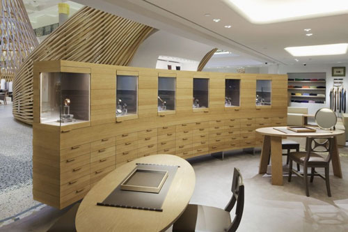 在严苛、精致、高贵等一系列“爱马仕关键词”的层层包裹下,芒泰尔硬是将该品牌最新落成于巴黎色佛尔大街(Rue de Sèvres)的精品专卖店做成了一间亲切的、平民化的小店。他用未经粉饰的天然木材,在店内搭建乡村小市集一般生机勃勃的木穹隆小摊,打造“茶余饭后来逛逛吧”的温暖舒适感。这种平和、宁静、亲切、自然的设计风格完全颠覆了奢侈品店面通常呆板、高傲、冷峻的形象定势,尖锐地重创了大众和媒体的惯性视觉,令其惊讶不已。更厉害的是,这个设计的亲和力如此深入人心,使得那些原本从不关注奢侈品的平凡人,也把这家店作为最想去溜达一圈的好去处。而且他们还真去了!