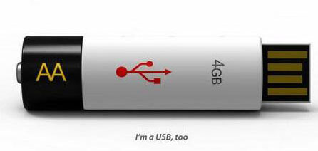 现在社会讲究环保低碳,讲究一物多用,可当U盘可充电的AA电池刚好符合了这2大要素。