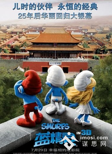 7月29日国内与全球同步公映的消息刚刚得到确认,很快就有疑似国内版《蓝精灵》海报在网络上现身,分为“三人行”和“老友记”两种版本:一版是以蓝爸爸、蓝妹妹和聪聪亮相的版本背景为紫禁城,三个小家伙站在高耸的城墙外向故宫内张望;另外一张海报,6大蓝精灵主角集体出现在长城脚下,蓝爸爸还带上时髦的墨镜,可爱娇憨的表情“萌”意十足。不过也有人猜测这两款海报的真实身份,认为这是《蓝精灵》粉丝们的“恶作剧”,到截稿时电影制片方仍并没有给出明确的回复。