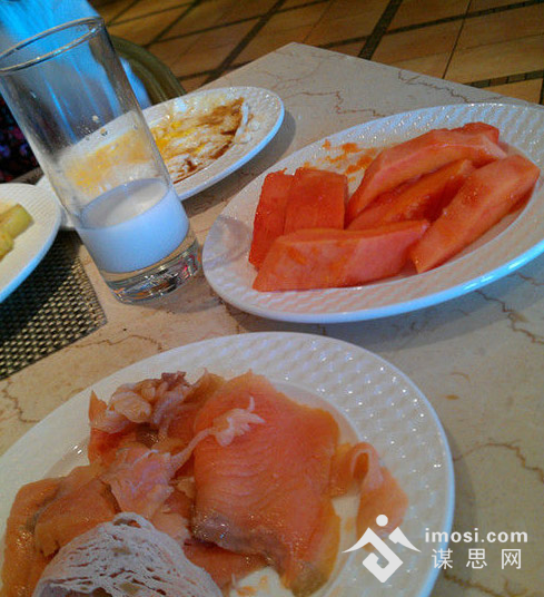 浓浓的椰汁非常的美味,搭配上烟熏的三文鱼以及土豆饼和美味的木瓜,真的是好满足啊。
