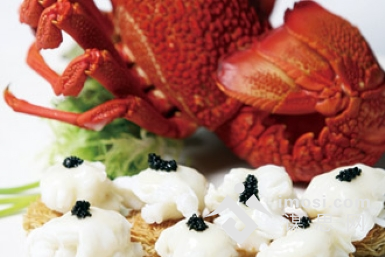 大连新世界酒店的品味轩餐厅的龙虾全都是由澳洲进口,是目前世界最名贵的虾种之一。澳洲咸水龙虾肉质细嫩、滑脆、味道鲜美香甜,风味别具一格。廖师傅亲自逐一挑选体态健壮、表壳红亮、肉质嫩滑的一只只鲜活龙虾,务必做到以原料为起点的每一道过程,都能确保食物的味道与色泽。