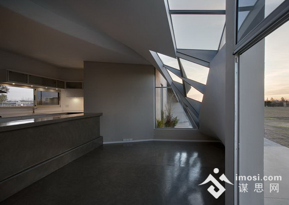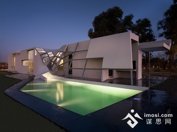 这座位于阿根廷的独栋别墅名为“FYF住宅”,该建筑位于距离布宜诺斯艾利斯北部300km的罗萨里奥郊区。建筑师想把这个200平方米的项目设计成一个单独的体量,但是从外观上看却不是一个完整的形体,而是被一个微妙的弯曲形态缩打破,从而创造一个复合的空间来重新定义室内外空间。一系列的折叠和弯曲钢筋混凝土外壳构成了整个建筑的主体,建筑师在过渡的部分为建筑提供了开口,并形成一个可透光的,便于通风的内部空间,同时为业主提供了倾斜的视野。这种创新的设计也形成了现在透明轻盈的效果。