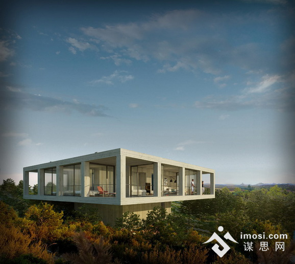 这座度假别墅主要是一个中空的混凝土单体,并将它升起凌驾于周边的树林之上,以便毫无阻挡的俯瞰西班牙matarranya地区的美景。底座有大量的材料支撑着整个住宅,给居住者带来飘浮在树上的独特感观。建筑中心处中有一个露天游泳池,游泳池边有建筑师精心设计的窗洞,这是为了让居住者在这游泳中也可以纵览四面八方的景色。起居室外设有一圈凉台,它作为休闲平台和阳台的混合体,为住户提供了开放的户外活动区域,随时都能饱览无敌的景色。