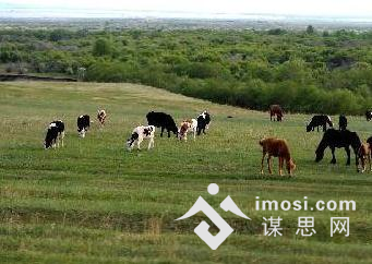 畜群在内蒙古呼伦贝尔市扎兰屯境内的雅鲁河畔吃草
