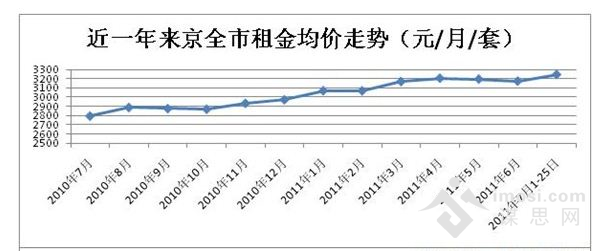 近一年来北京租赁均价走势
