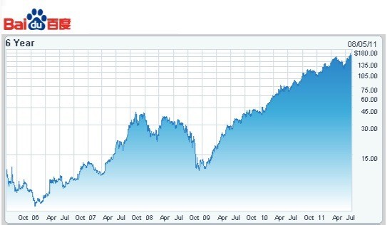 8月5日是百度登陆纳斯达克六周年纪念日。六年前,百度成功登陆纳斯达克,股价从发行价27美元起步,一路飙升。按拆股前价格计算,百度现在股价已经高达1439美元,成长超过52倍。对全球资本市场来说,市值超过500亿美金的百度,已成为名副其实的 “中国名片”。