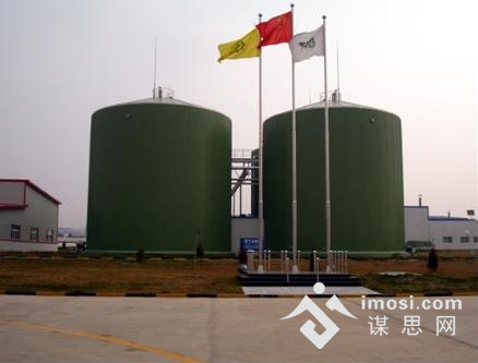 蒙牛沼气发电项目中巨大的沼气发酵罐