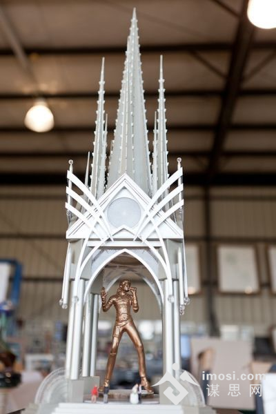 最近,艺术家Strong邀请了洛杉矶的记者参观了杰克逊的艺术工作室,工作室里最醒目的是一位澳大利亚的设计师专门为杰克逊制作的一个雕塑,是杰克逊在教堂里唱歌的一个造型,Strong说,“他希望他的歌迷们可以在这个教堂里结婚,同时听着他的音乐。”