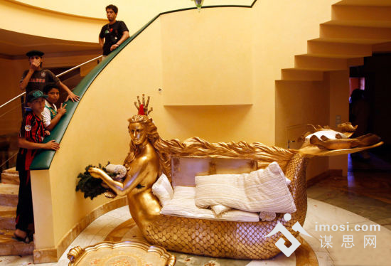 在卡扎菲女儿Aisha的家中,有一个巨大的美人鱼金像,美人鱼拥有一张和Aisha一样的脸。