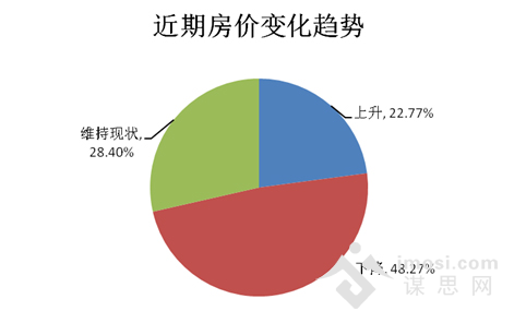 搜房网数据监控中心调查数据显示,在所有参与调查的46个城市中,认为房价会下降的购房者相对较多,占比达到48.27%,而继续看好后市,认为房价还会上涨的购房者仅22.27%,另有28.40%的购房者则认为房价将继续维持现状。