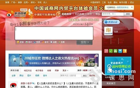 为了进一步利用微博这一新型网络媒体进行有效的市场营销,中国诚商网新浪微博目前正在筹划、组织各类与会员、粉丝的互动交流活动。意在于该领域大幅度提升中国诚商网的品牌知名度以及有效提升会员、粉丝与网站的亲和度。