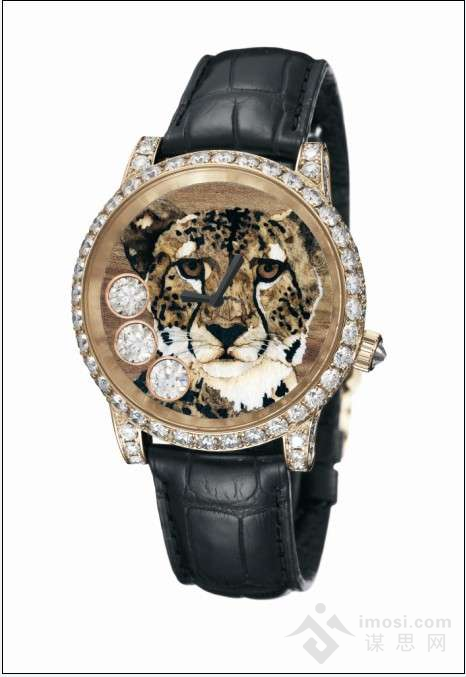 豪门世家(Sarcar)时光闪跃(Carrousel)系列采用古代的镶嵌细工技艺,在表盘上描绘出栩栩如生的高贵动物,赋予它们新的生命。 18K 玫瑰金或白金镶钻表圈和表耳,表盘上镶有三颗0.5 克拉的旋转单钻,尽显尊贵与创意。这也难怪钟表爱好者和收藏家们对这款富含艺术工艺的奢华珠宝腕表狂热追捧了。