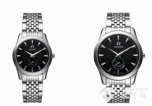 品质方面,Galaxy系列采用来自瑞士原汁原味的超薄优质石英机芯,6时位小秒盘的设计不仅恰到好处的将夜空的繁星景象演绎得淋漓尽致,更让佩戴者在感受星空慑人魅力的同时精准把握每一秒商机。耐磨蓝宝石镜面折射出的幽幽蓝光,宛若将银河的璀璨华彩戴在腕间。表盘上方篆刻“ROAMER”百年品牌字样,下方对应“Galaxy”,加上线条流畅的柳叶形指针,恍若璀璨星空中拂过的一缕清新,一眼望去清新利落、时尚简约。全实心不锈钢表壳呈现出低调的奢华,沉稳不失时尚的同时,也彰显出整表的尊贵品质和佩戴者的显赫身份。
