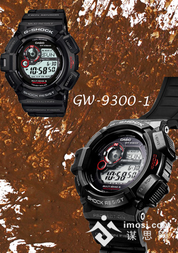 GW-9300-1DR,全新一代MUNDMAN泥人,先进6局电波、太阳能充电系统,防震,防泥,双重感应器。为极端环境下使用而准备,从汽车拉力比赛到野外生存探险活动,新一代的MUDMAN除秉承G-SHOCK的防震结构外,还加入防尘防泥结构和双重感应器。它能面对恶劣环境下的各种使用需求和挑战,即使是高温与沙尘的沙漠环境。