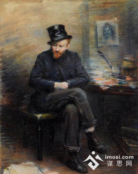 这一点得到了英国面部识别专家的肯定,除此之外,很多艺术史和梵高专家也认为画中人有很大可能是梵高本人。这幅画的背面有L'Incompris' 的字样,翻译过来是“误解”的意思,背面还有Jeanne Donnadieu(让娜-多纳迪厄)的签名,她是一位法国女艺术家。很少有人知道,当年,梵高与弟弟提奥住在巴黎期间,让娜-多纳迪厄是梵高的邻居,他们彼此的家就只隔着4个门。让娜曾为梵高画过一幅全身像,很有可能就是这幅。