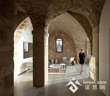 石屋高高的拱形天花板、裸露的砖墙揭示着这个建筑的最初面貌。而今,简约的现代内部装饰与石屋的特点恰到好处地融为一体。