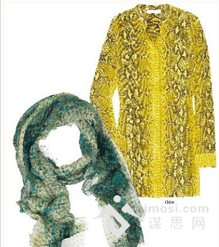 如果你自认为无法驾驭太过霸气的蛇纹,这一季也有不少品牌将蛇纹的夸张感进行了和谐化处理,或是像Christian Dior、Missoni采用的粉色系色调让蛇纹从冷艳变成可爱。而一向热衷于少女路线的Chloé,则以雪纺、丝缎等柔软的质地,让蛇纹原本难以接近的冷艳幻化成了浓浓的女人味。当然,若实在还是觉得夸张,还可以选择在仔裤前插兜、围巾等处的小面积的运用, 既能贯彻品牌平和、质朴的风格,又在暗哑清淡的色彩和保守、中正的款式中体现高级感。