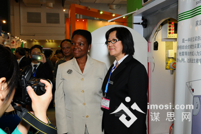 联合国副秘书长阿莫斯(左)与湖州神泰科技股份有限公司总经理赵英慧(右)亲切合影