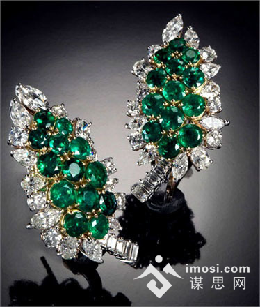 令人称奇的叶状耳饰,镶有哥伦比亚祖母绿和钻石