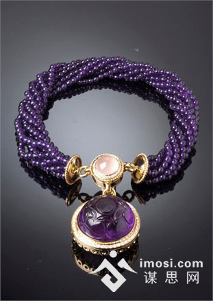 Dafne项链,主石雕花紫金石, 辅石芙蓉石和钻石
