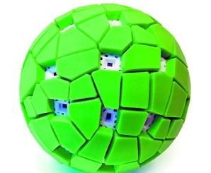 它外部由不规则绿色塑料块拼接而成,保护着内部的球体机身。相机由36个独立手机镜头组成,镜头分布在塑料块的空隙中间,每个是200万像素。