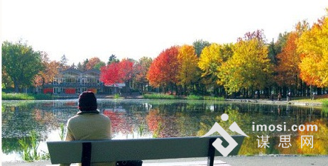 转眼秋意渐浓,千万不要等到冬日来临,大地一片苍茫之时,才去追悔与秋天的擦肩而过。去寻找最美的秋吧:梧桐的金,枫叶的红;落英的飘渺,湖水的凛冽。不同颜色,不同角度,却共同记录一个最美的秋……一进入秋天,蒙特利尔的皇家山公园就成了一块闪闪发光的红宝石,时时诱惑着人们前往,进入公园,其乐融融的景象会一路伴随你走到山顶,带小孩的家庭最喜欢做的事情,是用满地的金黄落叶将自家小孩埋了起来,形影不离的情侣躺在草坪上说着悄悄话,爱运动的人骑着自行车或跑步从你身边经过,爱戏水的狗狗在湖边小试身手,就连卖冰激凌的小贩也无所谓生意好坏了,嘴里哼着自在的小调。走在公园的甬道上,落叶飞舞,每棵树都有不同的风采,脚边不时有松鼠出现,睁着无辜的大眼睛,等着你给食物,虽说有规定不让喂食松鼠,违者要被罚款,但是大家还是忍不住停下来用好吃的招呼这些小家伙,一听到警车声,人们便鸟兽散,生怕被抓个现形。从山顶的几座瞭望台俯望,市区林立的高楼大厦、纵横交错的街道、圣劳伦斯河秀丽的姿容,都一览无遗。在春季到秋季这一段时间有迷你电车行驶,走累了可以随时跳上去,公园最上部还有马车作交通工具。1932年所建的观景山庄(The Chalet Lookout)是观赏市区的最美角度,从水平方向眺望,可以看到帷幕大厦玻璃映现出的朵朵云彩,高耸的办公大厦像是钢筋水泥筑成的峭壁;波光粼粼的圣劳伦斯河上,一座座大型的金属拱桥,两岸车辆川流不息。