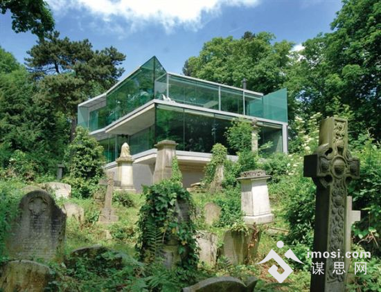 这座由EldridgeSmerin设计的住宅一面是落地玻璃窗,另一面是由打磨过的黑色花岗岩、钢板和磨砂玻璃构成的幕墙。既可以欣赏到全方位的景色,也最大限度地保护了隐私。这座曾经获得2009英国皇家建筑师协会大奖的四卧住宅位于Waterlow公园旁边,共四层,起居面积为430平方米,有两座露台和一流的厨房,厨房中的可伸缩式屋顶天窗能将厨房变成露天球场。