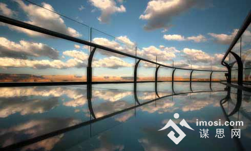 美国大峡谷的恐怖的大风让任何普通桥梁都无法安身。然而,2007年一个超乎想象的U形玻璃桥却在悬崖边落成了。只要有足够的胆量,就可以站在这座透明的空中天桥上,在心惊胆战的刺激中将美国大峡谷风光尽收眼底。这就是美国大峡谷空中玻璃走廊Skywalk。