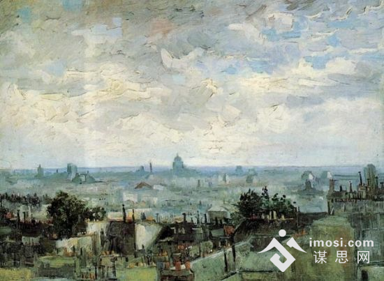 1886年,梵高来到巴黎与泰奥同住。他在巴黎第一次看到印象派的绘画,大为震惊。泰奥把印象派的情况介绍给他,他们还一起参观了第一次印象派画展。印象派画家大都喜欢表现自然界的光和色,也表现现代都市的运动感。泰奥陪着梵高仔细地揣摩了所有的展品;莫奈的油画描绘了河水、天空、房屋、树木,捕捉了变幻的色、跳动的光,使他感到充满战栗的生命感。毕沙罗的作品表现大自然的欢腾之息。日本浮世给版画鲜明的大色块对比的装饰性色彩,使他一见倾心。灿烂的阳光,丰富的色调,给了梵高许多灵感。他到街头写生,到近郊写生。他力图画得很亮,但却丧失了自己的独特风格。他感到苦恼,他要表现光明的世界。