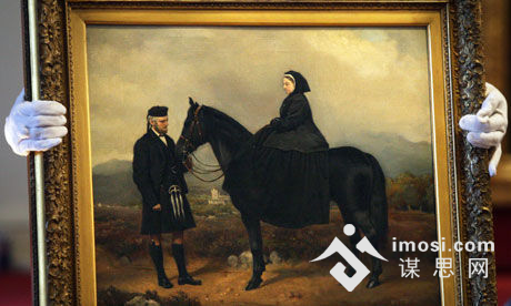 一幅维多利亚女王的肖像最近亮相,画面中是女王穿着长裙坐在马背上,牵马的则是她最爱的仆人约翰·布朗。