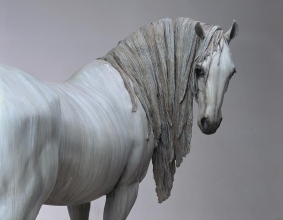 而在6组“动物”主题作品中,最吸引人的莫过于《异域——不损兽》和《异域——彼处》,不少人蹲下仔细去看这些动物的眼神。这些动物的造型看似单纯、逼真,却又蕴含着微妙的变形,它们往往在细节上有别于现实中的单一原型,糅合了别的动物种类的特征和艺术家自身的想象力,并且以斑驳的色调暗示着沧桑和神秘,在某种程度上令人联想到《山海经》或者阿根廷作家博尔赫斯的“幻想的动物”那样的奇幻文本。