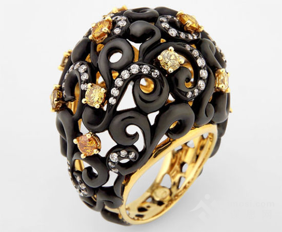 坦率地说,这种非凡的珠宝会不言而喻。各种各样颜色的宝石和组合宝石的使用,常具幽默感,精美的设计真正是社交的一部分。从古典的花朵,栩栩如生的蝴蝶图案,到茄子形状以及豪华的貂皮刺猬,每一件都令人眩目:或妖艳魅惑,或如天使般轻灵纯净,或幻化成动物造型,或简洁随意如行云流水,或如天上繁星……Marchak的设计无疑满足了每一位期待有新点缀的女士的愿望。瑞贝继续说:“对我们来说,及其重要的是每一款中的秘密细节。”