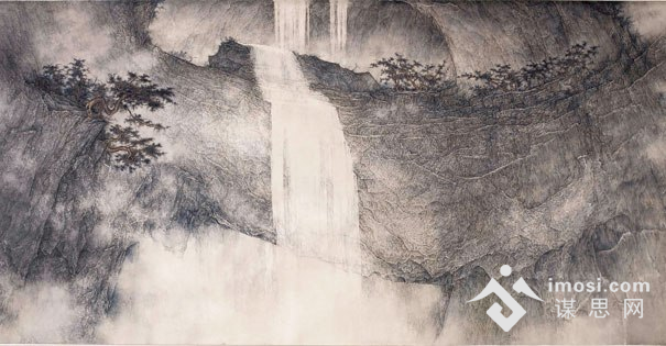 李华弌,《丝瀑》(Waterfall Of Silk),纸本设色,114×236cm,2010
