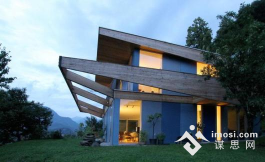 这个拥有5个卧室的私人住宅背后靠着陡峭的大山,住宅向山谷打开的用时,也将后侧嵌入了山体。为了增加对立面的遮阳,设计师制造了一个巨大的悬挑结构以及天空框架。这个延伸在外的框架会被种植上葡萄藤或者是其他的植物,形成自然的遮阴,同时也提高了冬季的阳光吸收度。悬挑结构以及天空框架还能给住宅创造一个充满活力的形象。