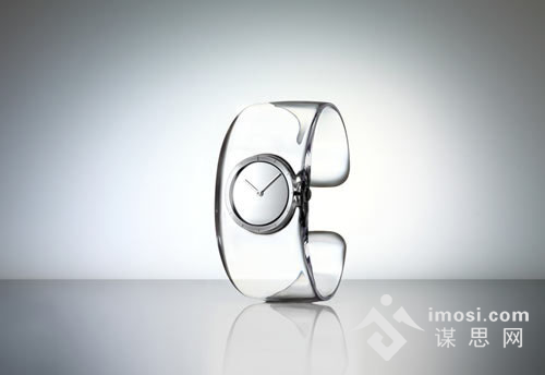 我们可以很直观的感受到此款腕表的设计灵感来源于水,它看上去就像是用冰块雕刻而成的,表盘如同被冻结在水晶般的表带之中,流动的线条与清透的外观兼具水的形神。