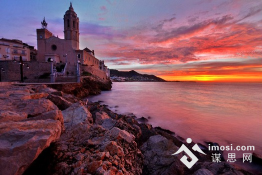 绵软细沙,海浪入耳海风拂面,白色的古典建筑,鲜花遍地,游艇棕榄……来巴塞罗那旅游的人,一般都不会到本地海滩游泳或是日光浴,而是涌向西切斯。绵延几公里的西切斯海滨是西班牙黄金海岸上最灿烂的明珠,加上西切斯小镇的浪漫风情,来自全世界的游客仿佛置身天堂。西切斯海滨是疗养者的度假胜地。海角上有一座玫瑰色的教堂,如同一朵盛开的鲜花。