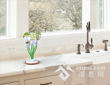 如果有了这款花茎花盆,这个扰人的问题就解决了。这款创意花盆的的气孔部分连接了长长的导管,并由6个小花盆组成了一束花束的模样。长长的花茎还可以任意弯折,方便种植的植物朝向阳光的方向。陶瓷制的花盆和底座清洁起来十分方便。白色的小花盆配上绿色的花茎显得优雅美观,让人赏心悦目。有了这款花盆,花花草草种在“花”上,无论是放在办公室,还是摆在家里,都是极其漂亮和实用的啊。