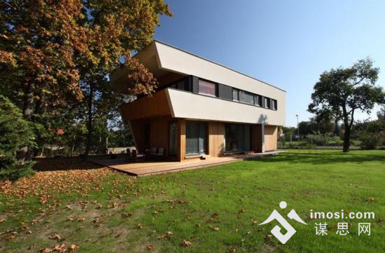 这座别墅名为Stribrna Skalice,意为银白建筑。为了与当地散落的功能性别墅很好的融合在一起,屋子的上部覆盖着白色的抹灰。木制外壳所包裹的剩余部分则与之形成强烈对比。