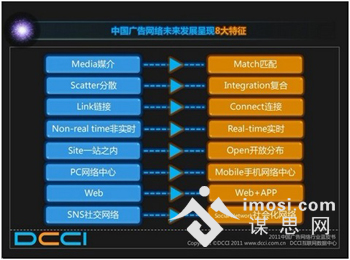 专家指出,国内广告网络增长迅速,类型渐趋丰富,各类不同的广告网络有所侧重,各有优势,为广告主提供不同营销目的的全程服务,为各类不同媒体挖掘不同的媒介价值。DCCI互联网数据中心认为,我国广告网络未来发展将呈现出八大主要特征,这八大特征可总结为MICROMAS,即:
