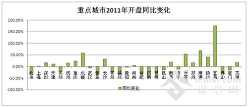 据搜房网数据监控中心统计,全国65个重点城市2011年楼盘开盘数同比上涨3.39%,其中开盘数上涨的城市约占总数的53.13%。65城上市套数同比下跌4.34%。北京、上海、南京等地库存量创新高。