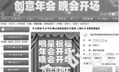 记者在某购物网站上搜索“年会演出”、“年会创意节目”,弹出了上千件商品。从创意点子、主持人串词、年会节目单到原创小品剧本、节目演出,年会节目相关商品等等,可谓五花八门,琳琅满目。最便宜的创意点子仅5元。卖家告诉记者,购买后会提供节目、游戏的构思,但没有详细的操作方案,标价上千的节目演出因其新颖独特,符合节日气氛而颇受白领欢迎,如川剧的变脸,魔术秀等等。记者在一家网店看到,售价1200元的沙画表演在一个月内已售出两件,卖家表示自己的沙画表演还可以根据买家的要求设计,也可配合歌曲、舞蹈、乐器、诗歌朗诵等等,绝对够创意。