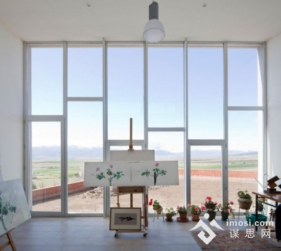 比较小的“盒子”则是被安放在比较高的地方,这里是卧室等更多的私人空间。分界模糊的室内外区域给生活空间和工作室带来分离感,但它们仍能通过第二层的走廊来进行连接。