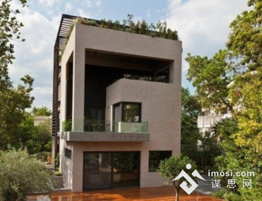 Filothei住宅是一个三层的体量,中间被掏空,以展示出一个室外的露台空间,这种形式使得建筑影子的效果更加突出,这也是传统的希腊建筑的一个显著特色。角落的窗户和其他的开口进一步突出了这种坚实与空洞之间,轻盈与厚重之间的对比和平衡,整体的效果又通过材料的使用被强化,黑色的熔岩石使内嵌部分的阴影效果更加明显。