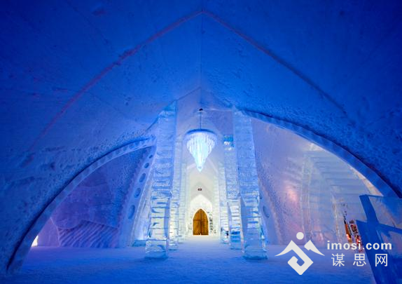 魁北克Hotel de Glace于2001年1月面世,至今已有十一年。酒店已经接待了全球各地旅客数十万,并成为冬季魁北克乃至北美洲最炙手可热的旅游景点之一。这家酒店的房间全部使用冰雪建造,房子的基架使用雪块堆成,家具则是用大块的冰雕刻而成,好像大理石一样坚硬。